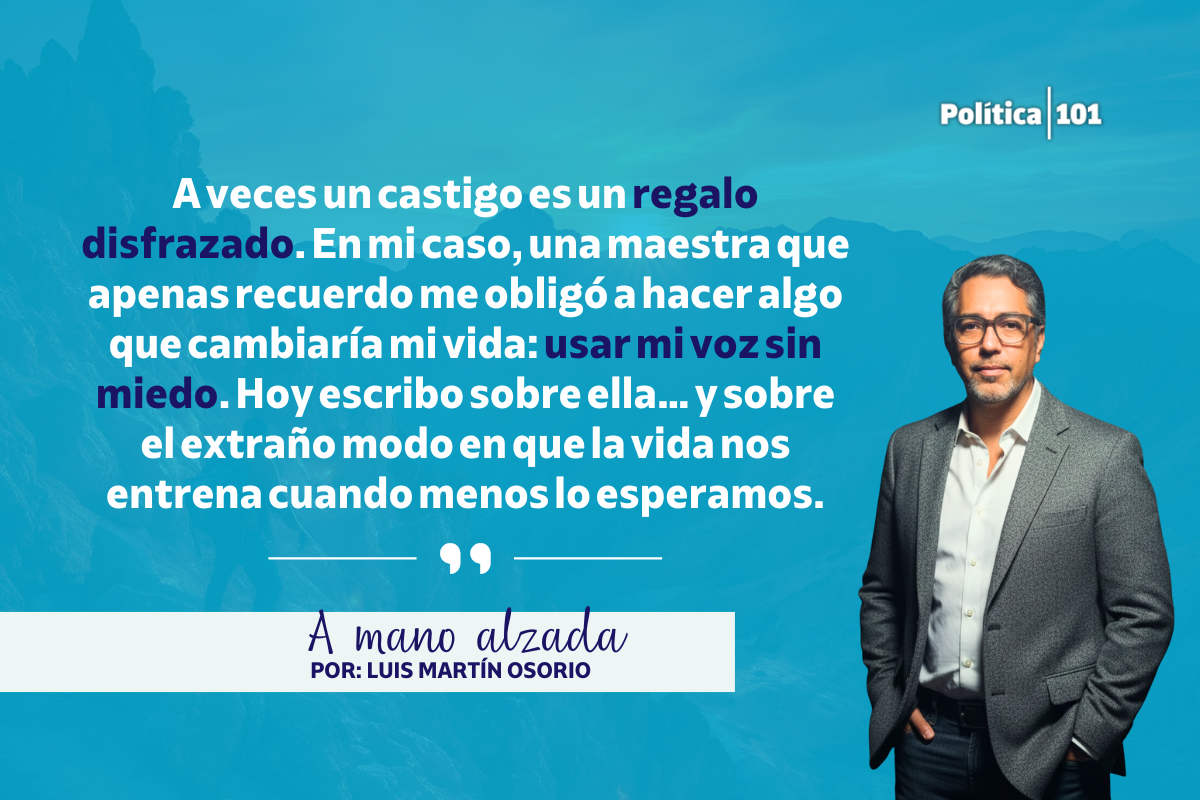 Hay castigos que nos revelan más de nosotros que de quien los dicta. El de la maestra Gloria me mostró mi voz, mi temple y mi posibilidad. Quizá en la arquitectura secreta de la memoria, ella sigue ahí, levantando un andamio cada vez que me paro frente a un público.