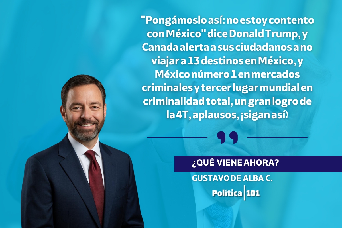 “Pongámoslo así: no estoy contento con México” dice Donald Trump, y Canada alerta a sus ciudadanos a no viajar a 13 destinos en México, y México número 1 en mercados criminales y tercer lugar mundial en criminalidad total, un gran logro de la 4T, aplausos, ¡sigan así!